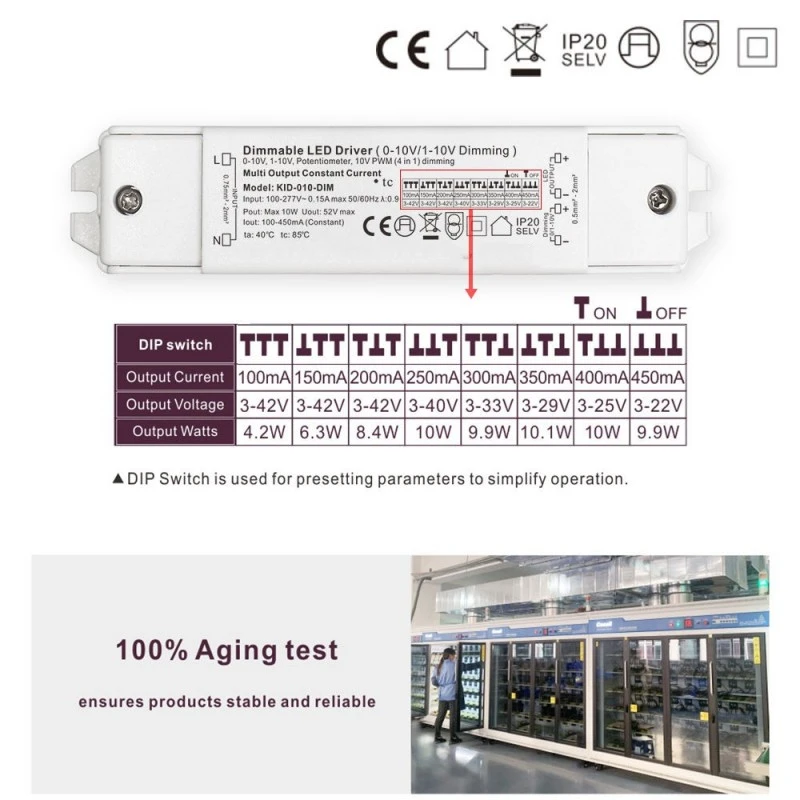 اسٹار ویل مستقل موجودہ 0-10V ڈیمبل ایل ای ڈی ڈرائیور کی تصریح: