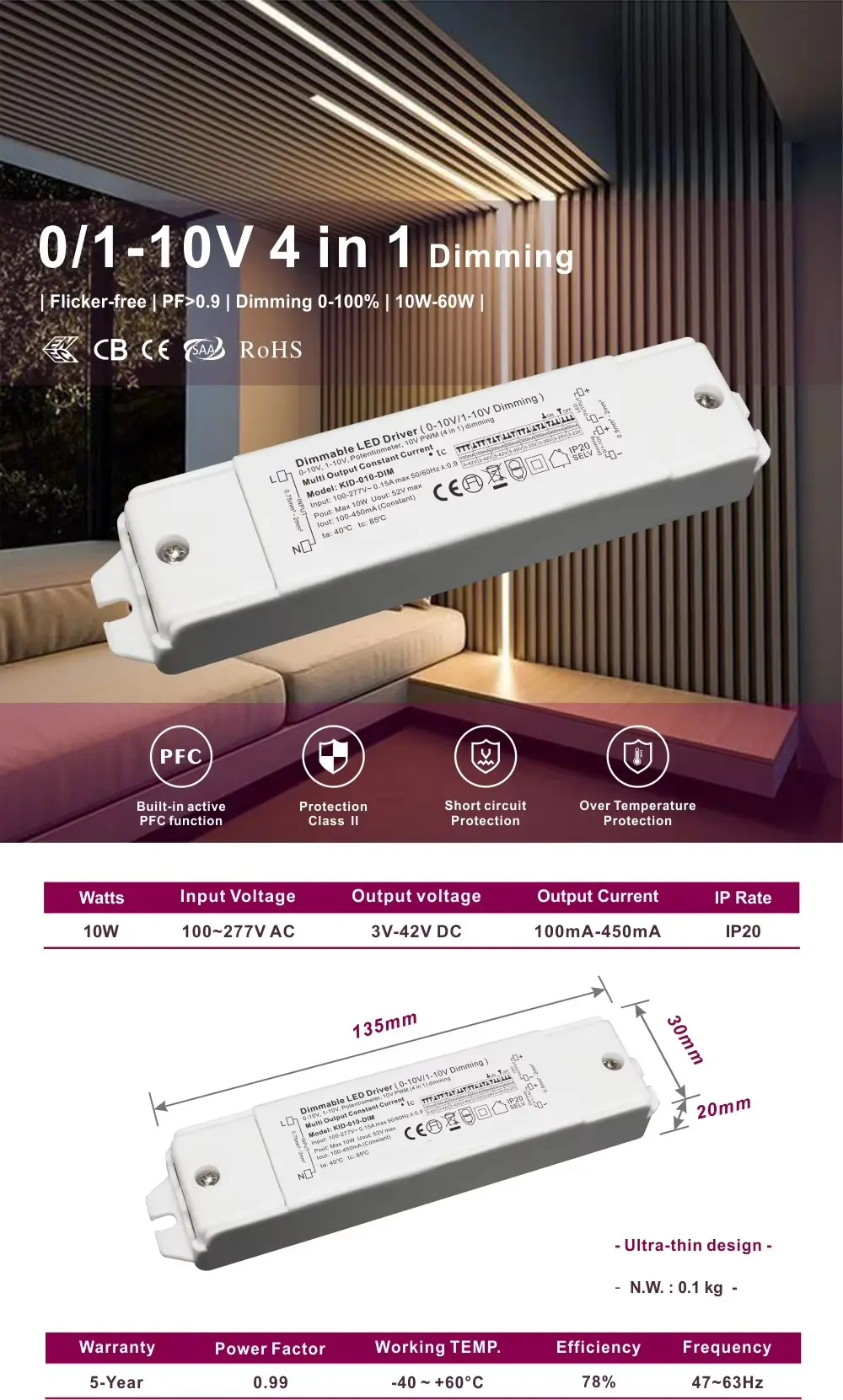 Triac & 0-10V 1-10V Dimmable |