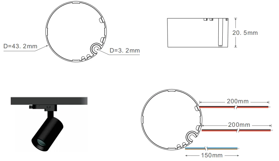 D43.2 × 20.5 ملی میٹر (L × W × H) |