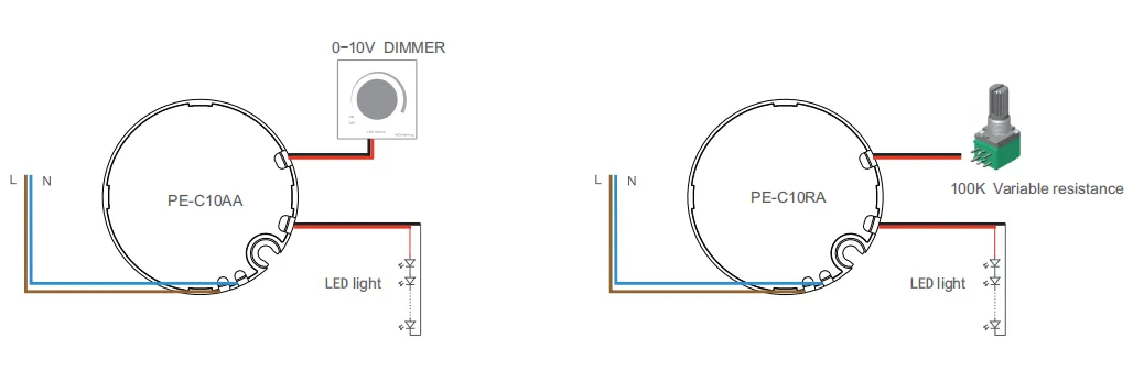 0-10V 1-10V 10VPWM سگنل انٹرفیس موجودہ <0.1mA (PE-C10RA کے لئے 100K پوٹینومیٹر) |
