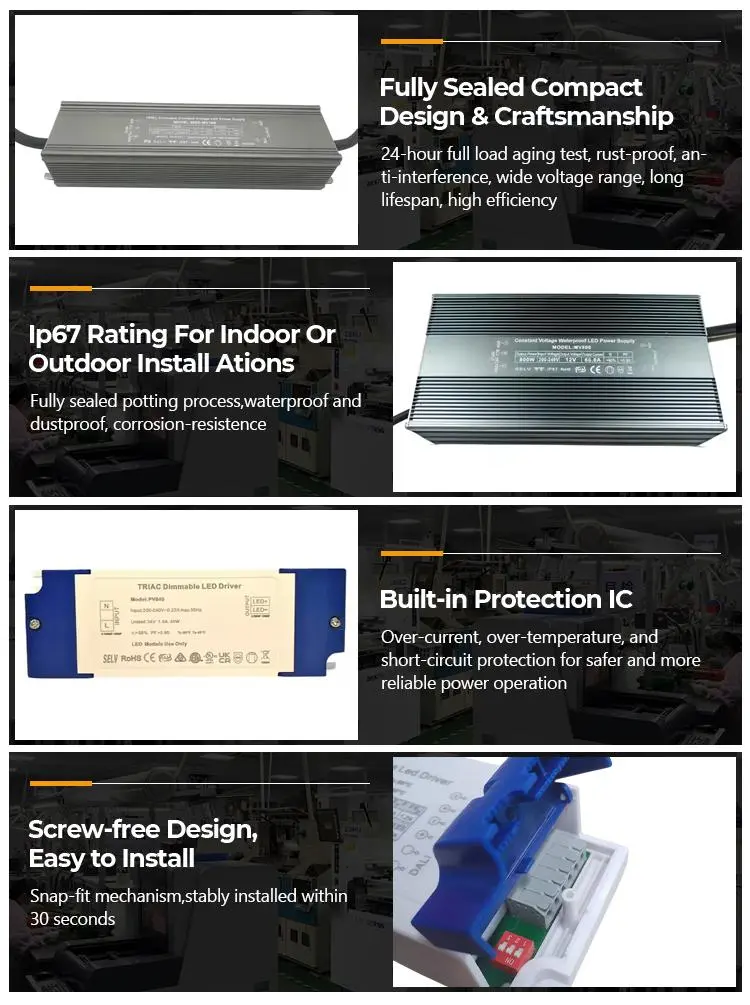 اسٹار ویل ہائی کوالٹی 1200MA مستقل موجودہ واٹر پروف ایل ای ڈی ڈرائیور ، خاص طور پر بیرونی/مرطوب ماحول میں ایل ای ڈی لائٹنگ فکسچر کے لئے ڈیزائن کیا گیا ہے ، جو 10-40W اسٹریٹ لائٹس ، باغ کی لائٹس ، انڈر واٹر لائٹس ، اشتہاری لائٹ بکس اور دیگر متعدد منظرناموں کے ساتھ مطابقت رکھتا ہے۔ اعلی صحت سے متعلق مستقل موجودہ چپ کو اپناتے ہوئے ، آؤٹ پٹ موجودہ غلطی ± ± 3 ٪ ہے ، جو 1200MA پر درست اور مستحکم برقرار ہے ، بنیادی طور پر ٹمٹماہٹ (فلکر کی گہرائی < 5 ٪) اور ہلکی کشی کے مسائل کو ختم کرنا ہے ، جو ایل ای ڈی فکسچر کی خدمت زندگی کو 30 ٪ سے زیادہ تک بڑھا سکتا ہے۔ IP67 واٹر پروف سگ ماہی ٹکنالوجی + واٹر پروف پوٹنگ ٹکنالوجی سے لیس ، واٹر پروف سطح 30 منٹ تک 1 میٹر پانی کے اندر 30 منٹ تک کوئی رساو تک نہیں پہنچتی ہے ، جو بارش ، چھڑکنے والے پانی اور دھول کے ساتھ مقابلہ کرنے کی صلاحیت رکھتی ہے ، جس میں 50،000 گھنٹوں سے زیادہ کی بیرونی مسلسل کام کرنے والی زندگی ہے ، جس سے یہ طویل مدتی استعمال کے ل more زیادہ قابل اعتماد ہے۔