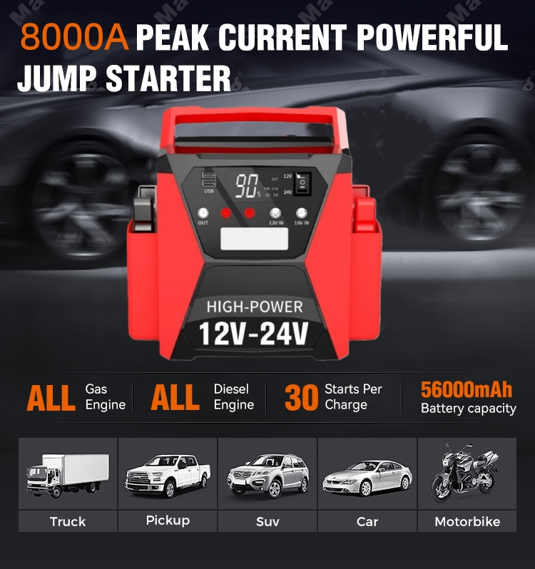 STARWELL نے اپنا اعلیٰ کارکردگی والا 12V/24V کار جمپ سٹارٹر انٹیلیجنٹ بیٹری چارجر متعارف کرایا ہے، جو گاڑیوں کے مالکان کے لیے ایک گیم چینجر ہے جو بیٹری کی بحالی اور ہنگامی طور پر شروع ہونے میں قابل اعتماد اور ذہانت کے خواہاں ہیں۔ 8000A چوٹی کرنٹ اور 4000A اسٹارٹ کرنٹ سے لیس، یہ دوہری وولٹیج ذہین بیٹری چارجر مضبوط طاقت کو سمارٹ ٹیکنالوجی کے ساتھ جوڑتا ہے، جو اسے تمام گیس انجنوں اور 15L تک کے ڈیزل انجنوں کے لیے موزوں بناتا ہے، جس میں کاروں، ٹرکوں، RVs، موٹرسائیکلوں اور بھاری گاڑیوں، حتیٰ کہ کمرشل گاڑیوں، بوٹوں کو بھی شامل کیا جاسکتا ہے۔