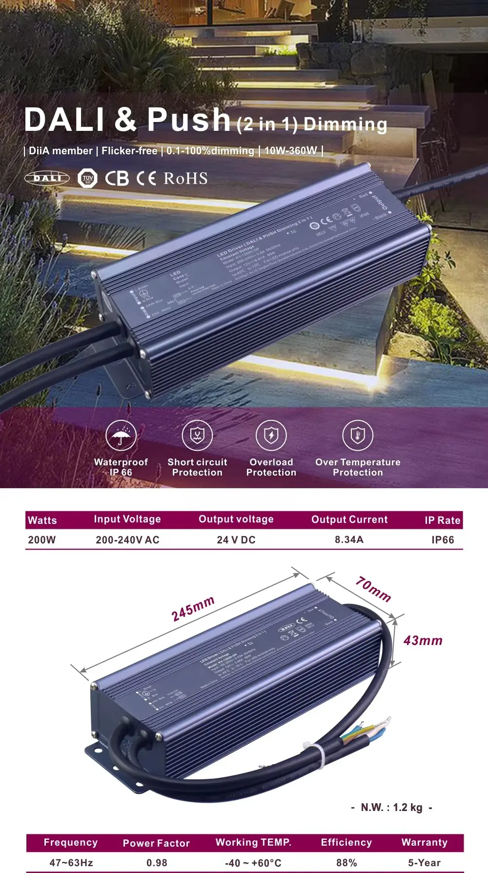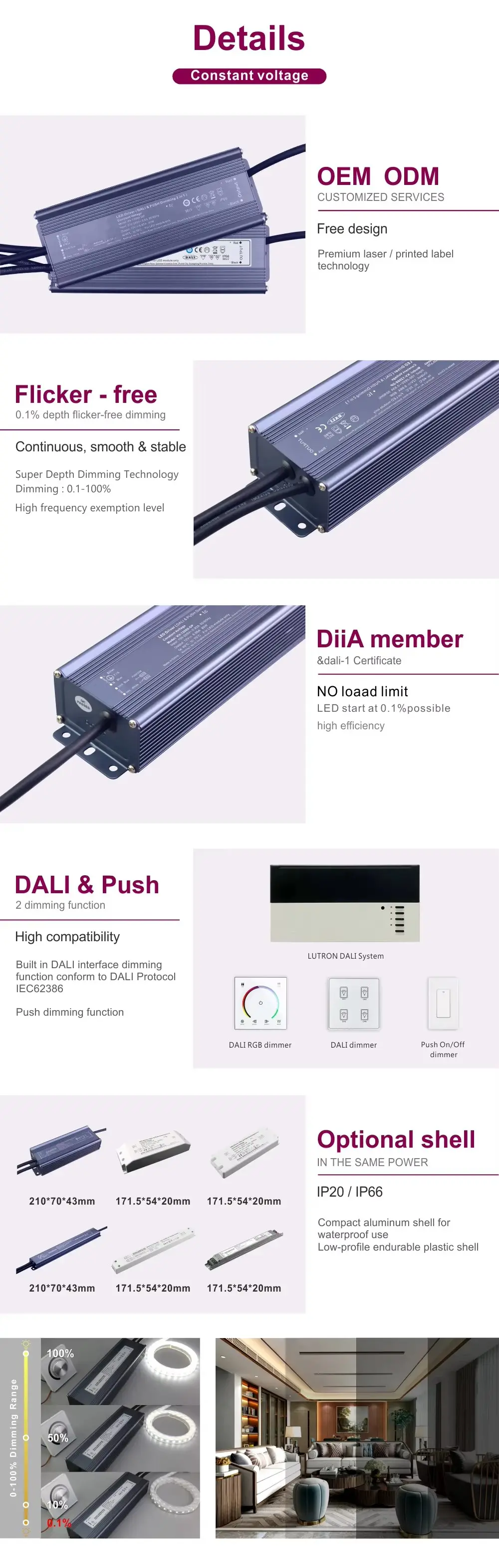بے عیب کارکردگی کے لئے انجنیئر ، اس میں حقیقی فلکر فری آپریشن اور ایک الٹرا ہموار 0.1 to سے 100 dimm ڈیمنگ رینج کی خصوصیات ہیں ، جس سے کامل روشنی کے معیار اور ماحولیات کی تخلیق کو قابل بناتا ہے۔ 12V یا 24VDC آؤٹ پٹ کے ساتھ 10W سے 360W تک وسیع پیمانے پر بجلی کی حد میں دستیاب ہے ، یہ مستقل وولٹیج ایل ای ڈی سٹرپس اور ماڈیولز کی وسیع صف کے لئے مثالی ، مستقبل کے پروف پاور حل ہے۔