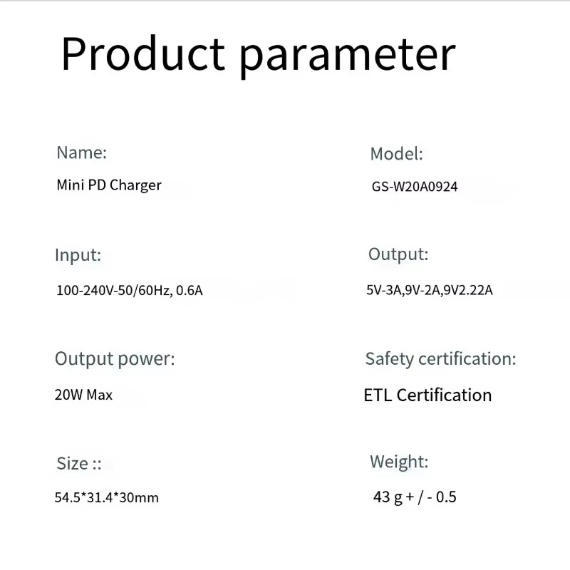 20W جاپان ورژن پلگ PD چارجر تفصیلات: |