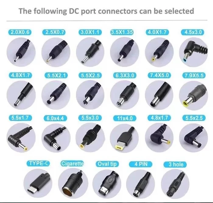 3. کنیکٹر مطابقت: اس بات کی تصدیق کریں کہ اڈاپٹر کے ڈی سی آؤٹ پٹ پلگ میں آپ کے آلے کے پاور جیک کو محفوظ طریقے سے فٹ کرنے کے لئے صحیح قطبی (اکثر مرکز- مثبت) اور جسمانی سائز (جیسے 5.5 ملی میٹر x 2.1 ملی میٹر) ہوتا ہے۔