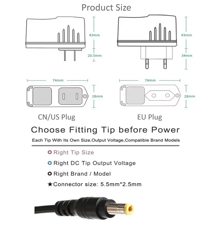 AC پلگ: US/EU/AU/UK/CN/CN/JP پلگ تبادلہ قابل