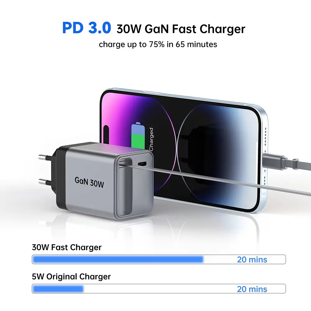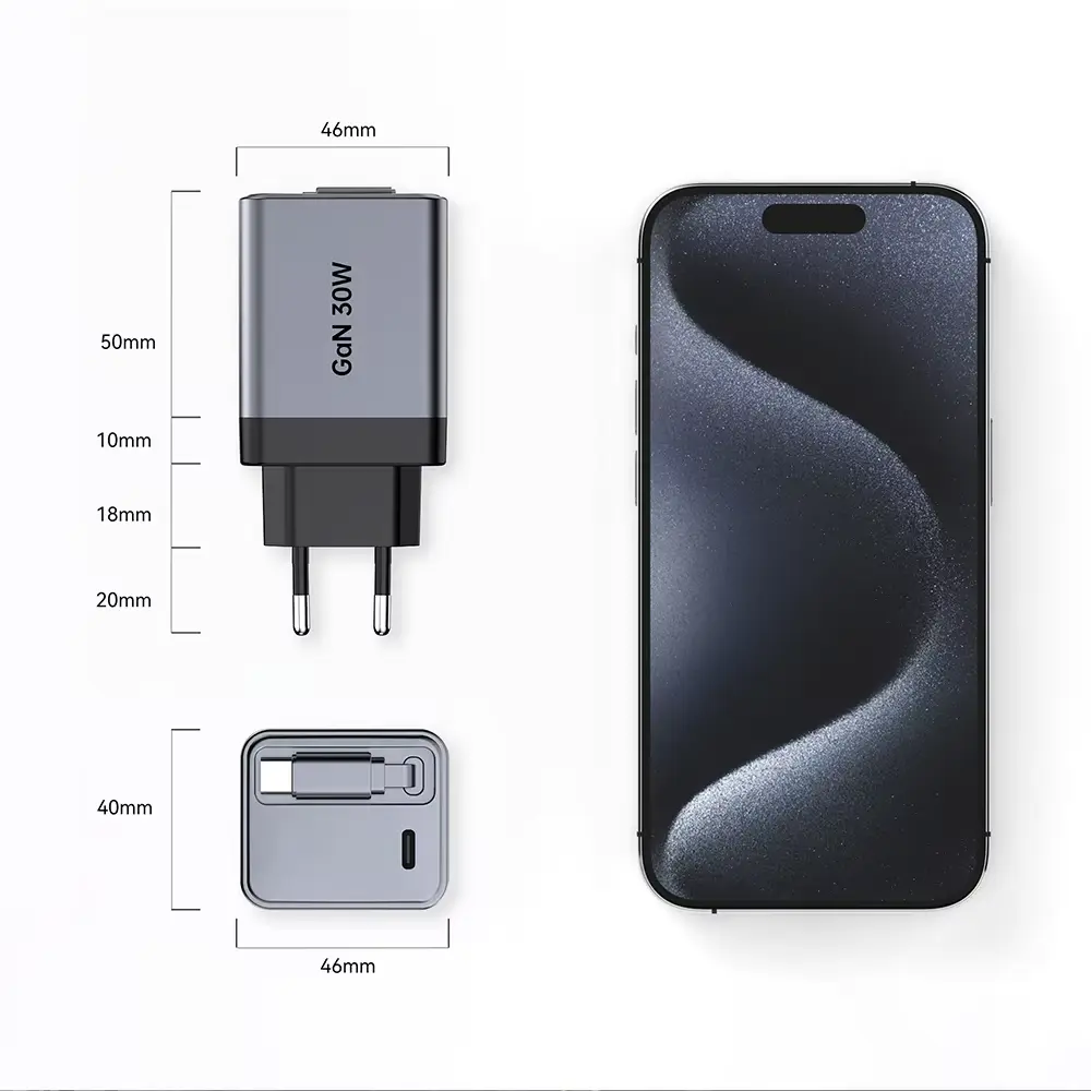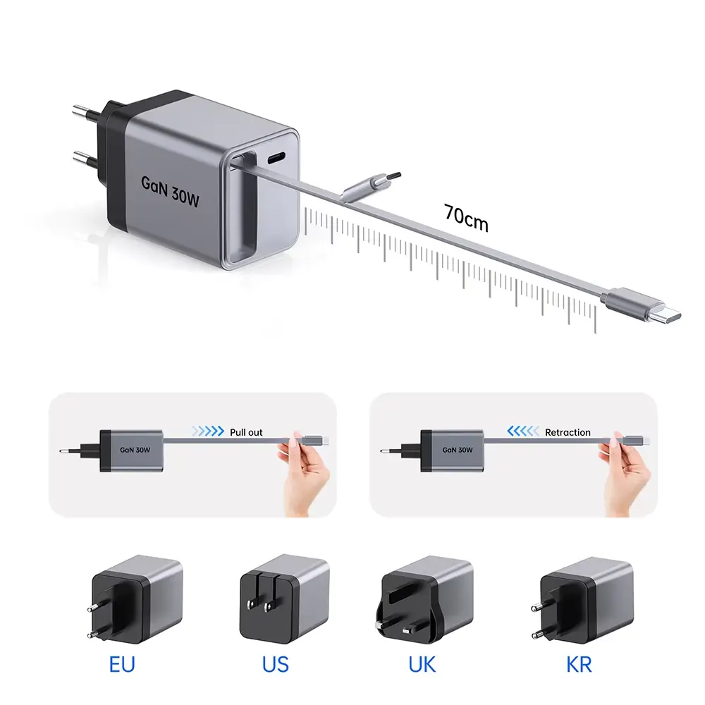 پروڈکٹ کا نام: 30W GAN PD اسٹریچ ایبل کیبلٹ فاسٹ چارجر |
