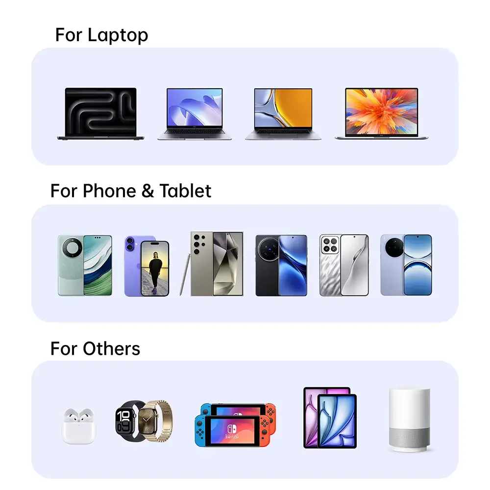 موبائل فون ، ہیڈ فون ، اور گیمنگ لوازمات سمیت USB-C آلات کے ساتھ ہم آہنگ۔ محفوظ اور موثر چارجنگ کے ل device خود بخود آلہ کی ضروریات کا پتہ لگاتا ہے۔ 4. ٹریول کے لئے تیار پورٹیبلٹی