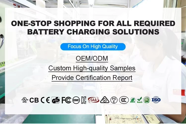 Q5: آپ کے پاس کون سے سرٹیفیکیشن ہیں؟ A: ہماری کمپنی ISO 9001:2015.ISO 14000:2015,QC 080000:2015 سے تصدیق شدہ ہے؛ ہمارے بیٹری چارجرز، پاور اڈاپٹر اور LED پاور سپلائیز UL, FCC, CUL, CE, RoHs, BVTU, CV سے منظور شدہ ہیں SAA, RCM, PSE, KC, CCC۔ Q6: لیڈ ٹائم کیا ہے؟ A: نمونہ: 3-5 دن۔ بڑے پیمانے پر پیداوار: 15-20 دن، آرڈر کی مقدار پر منحصر ہے. Q7: آپ سامان کیسے بھیجتے ہیں اور اس میں کتنا وقت لگتا ہے؟ A:ہم عام طور پر DHL, UPS, FEDEX, TNT وغیرہ کے ذریعے بھیجتے ہیں۔ اسے پہنچنے میں عام طور پر 4-5 دن لگتے ہیں۔ ہوائی، سمندر کے ذریعے بھی قابل قبول ہیں۔ Q8: کیا آپ ہمارے لیے الیکٹرک بائیک بیٹری چارجر کو اپنی مرضی کے مطابق بنا سکتے ہیں؟ A: ہاں، ہم OEM اور ODM دونوں کی حمایت کرتے ہیں۔