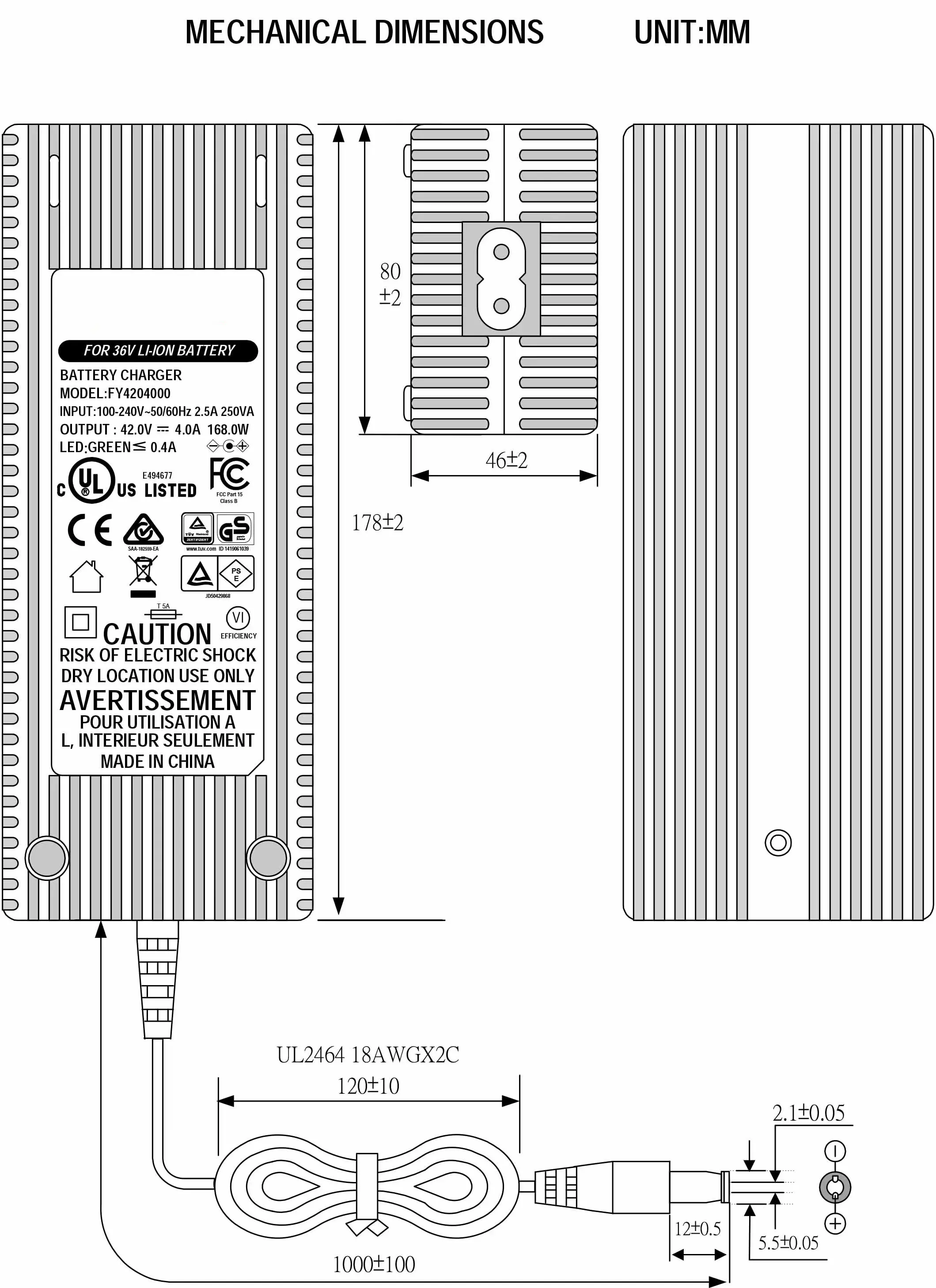 Starwell 42V 4A بیٹری چارجر کی تفصیلات: