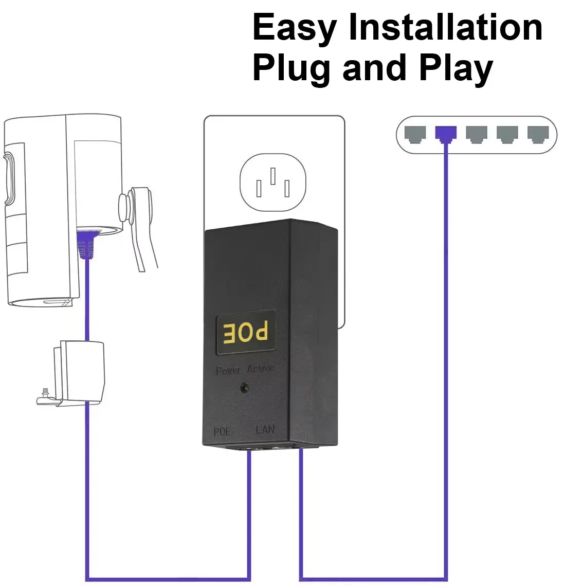 ڈیٹا اور پاور آؤٹ: 1 x RJ45 (خواتین) – PoE ڈیوائس سے جڑیں۔