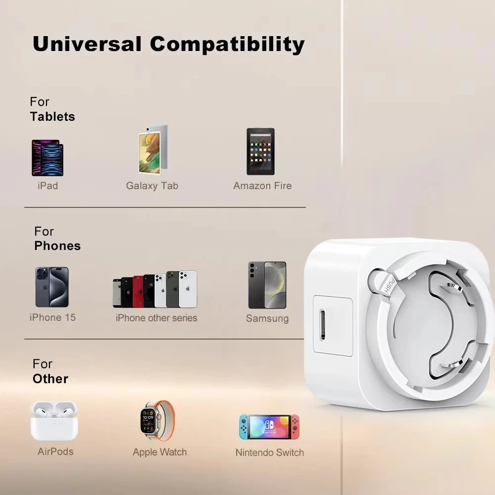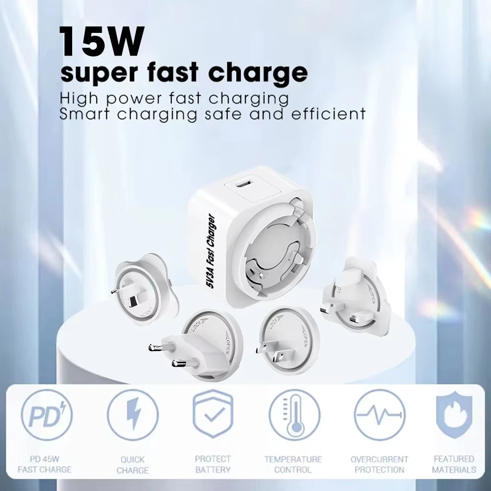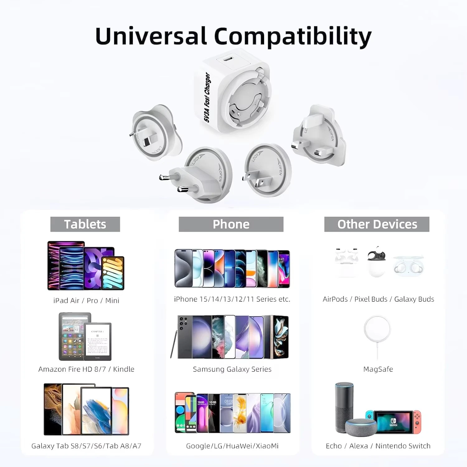 الگ الگ پلگ (US/EU/UK/AU/AU/KR/CN) کا مکمل سیٹ 150 سے زیادہ ممالک میں بغیر کسی رکاوٹ کے استعمال کو یقینی بناتا ہے - جو بین الاقوامی سفر اور روزمرہ کے استعمال کے ل perfect بہترین ہے۔