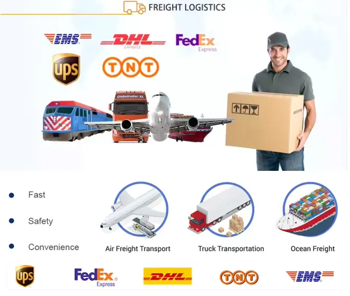 عام طور پر ، ہم UPS ، FEDEX ، DHL کے ذریعہ جہاز بھیجتے ہیں ... اگر آپ کے پاس لاجسٹکس کے لئے کوئی خاص ضروریات ہیں تو ، براہ کرم ہمیں پہلے سے آگاہ کریں۔