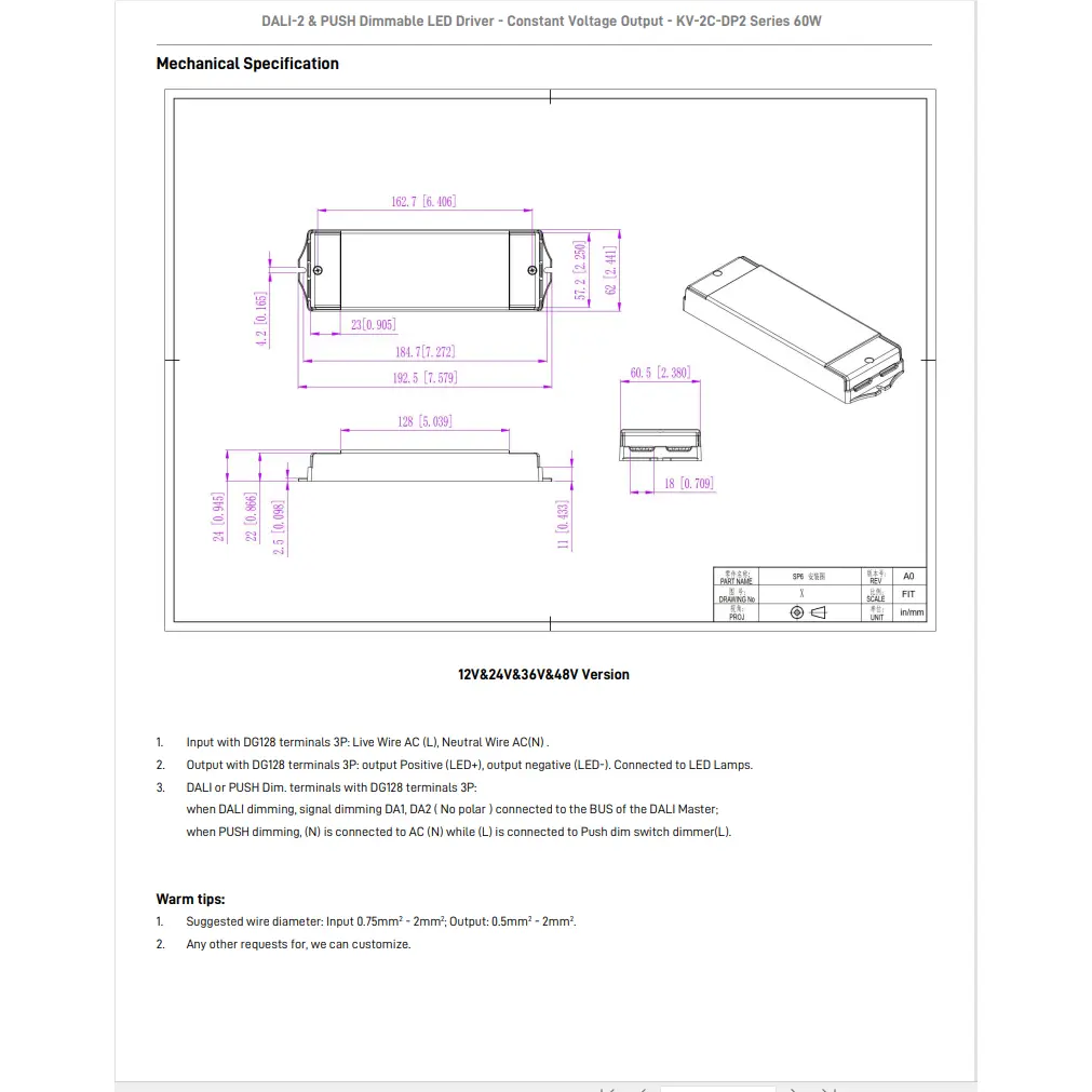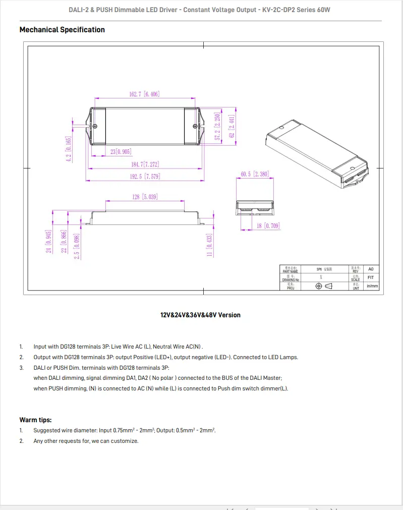 مدھم کرنے کا فنکشن: DALI-2 اور PUSH 2 in 1 dimming (CCT)۔ PWM آؤٹ پٹ فریکوئنسی 4KHz۔