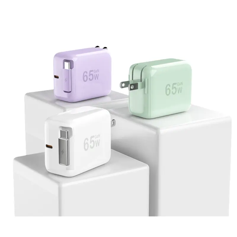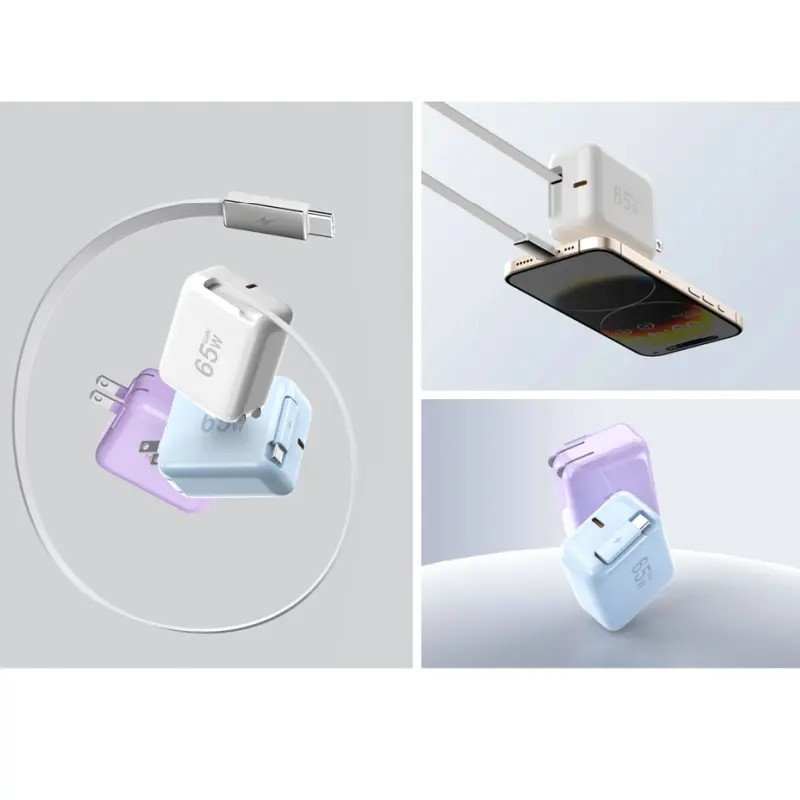 65W PD چارجر ٹریکٹ ایبل USB C کیبل کے ساتھ |