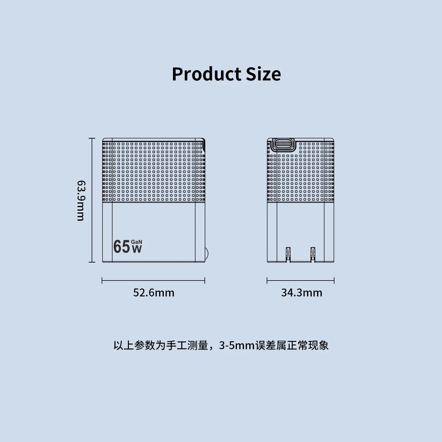 ڈوئل USB-C بندرگاہیں: 65W PD 3.0 چارجر بیک وقت دو آلات چارج کرسکتے ہیں۔ چارجنگ کے دو عمل کے دوران ، بجلی کو 45W اور 20W کے طور پر مختص کیا جاتا ہے۔