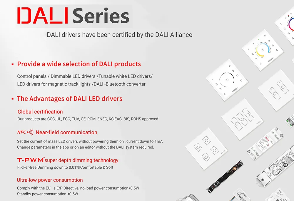 ایڈوانسڈ ڈالی ڈیمنگ کنٹرول - خودکار لائٹنگ سسٹم میں انفرادی یا گروپ کنٹرول کے لئے 64 ڈالی پتے کی حمایت کرتے ہوئے ، اعلی ریزولوشن کے ساتھ 0.1 to سے 100 ٪ تک ڈیجیٹل ڈیمنگ کو قابل بناتا ہے۔