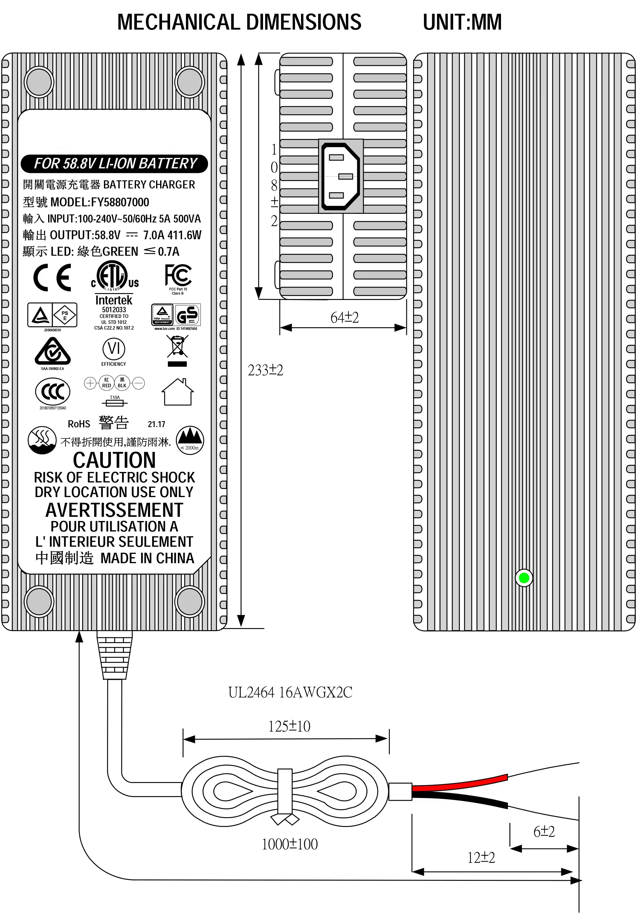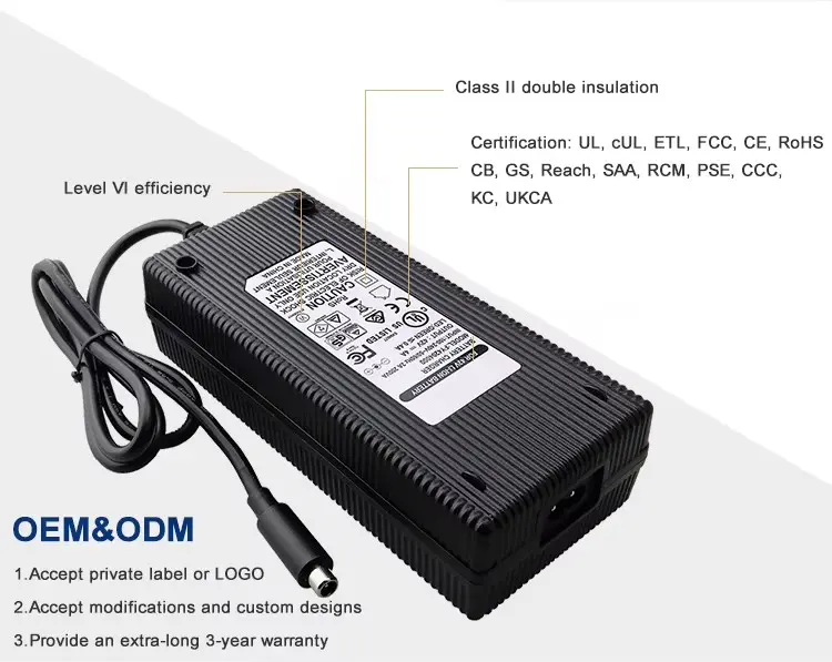 UL, ETL, CUL, GS, CE, BS, SAA, KC, PSE, CB, FCC, EMC, RoHS, REACH معیارات سے تصدیق شدہ، یہ چارجر الیکٹرک موبلٹی ایپلی کیشنز کی مانگ کے لیے موثر، تیز اور محفوظ پاور فراہم کرتا ہے۔