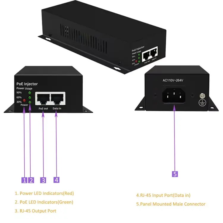 90W گیگابٹ POE انجیکٹر |