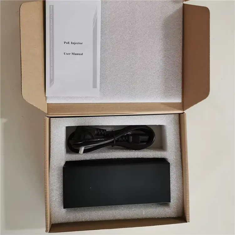 1. 90W گیگابٹ POE انجیکٹر: 1 سیٹ 2. دستی: 1 پی سی ایس 3. مطابقت کا سرٹیفکیٹ، وارنٹی کارڈ: 1PCS |