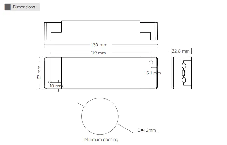 130 × 37 × 22.6 ملی میٹر (L × W × H) |