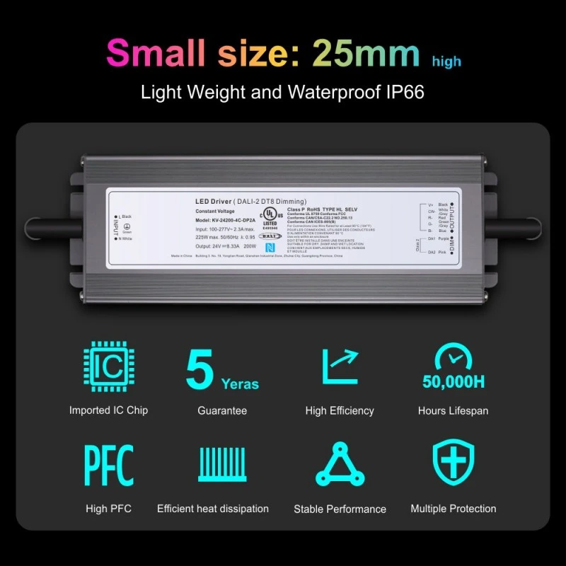 ہم جس معیار اور ذہنی سکون کا وعدہ کرتے ہیں وہ ہر تفصیل سے ظاہر ہوتا ہے۔ پروڈکٹ نے UL سرٹیفیکیشن حاصل کیا ہے، سخت بین الاقوامی حفاظتی معیارات کو پورا کرتے ہوئے، اور کوالٹی اشورینس کے لیے 5 سال کی وارنٹی کے ساتھ آتا ہے۔ مختصراً، یہ صرف بجلی کی فراہمی نہیں ہے۔ یہ لائٹنگ کنٹرول کا ایک طاقتور، قابل اعتماد اور لچکدار دل ہے۔ اس حقیقی DALI 2 DT8 Dimmable 200W LED ڈرائیور کو منتخب کر کے، آپ ایک پیشہ ورانہ گریڈ سمارٹ لائٹنگ سلوشن کا انتخاب کر رہے ہیں جو مستقبل پر مبنی ہو۔