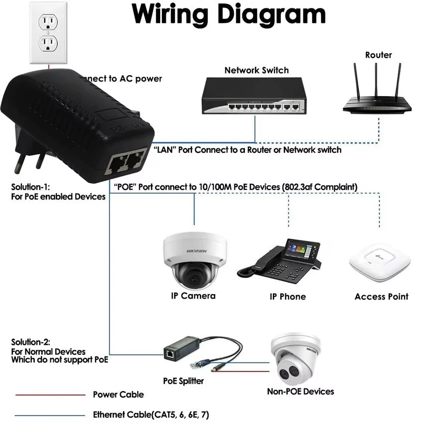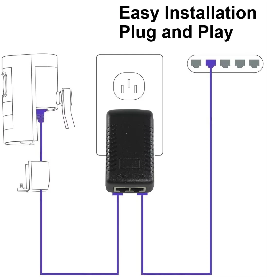 · پلگ اینڈ پلے: کوئی کنفیگریشن درکار نہیں۔ بس اپنے سوئچ سے LAN کیبل اور PoE کیبل کو اپنے آلے سے جوڑیں۔