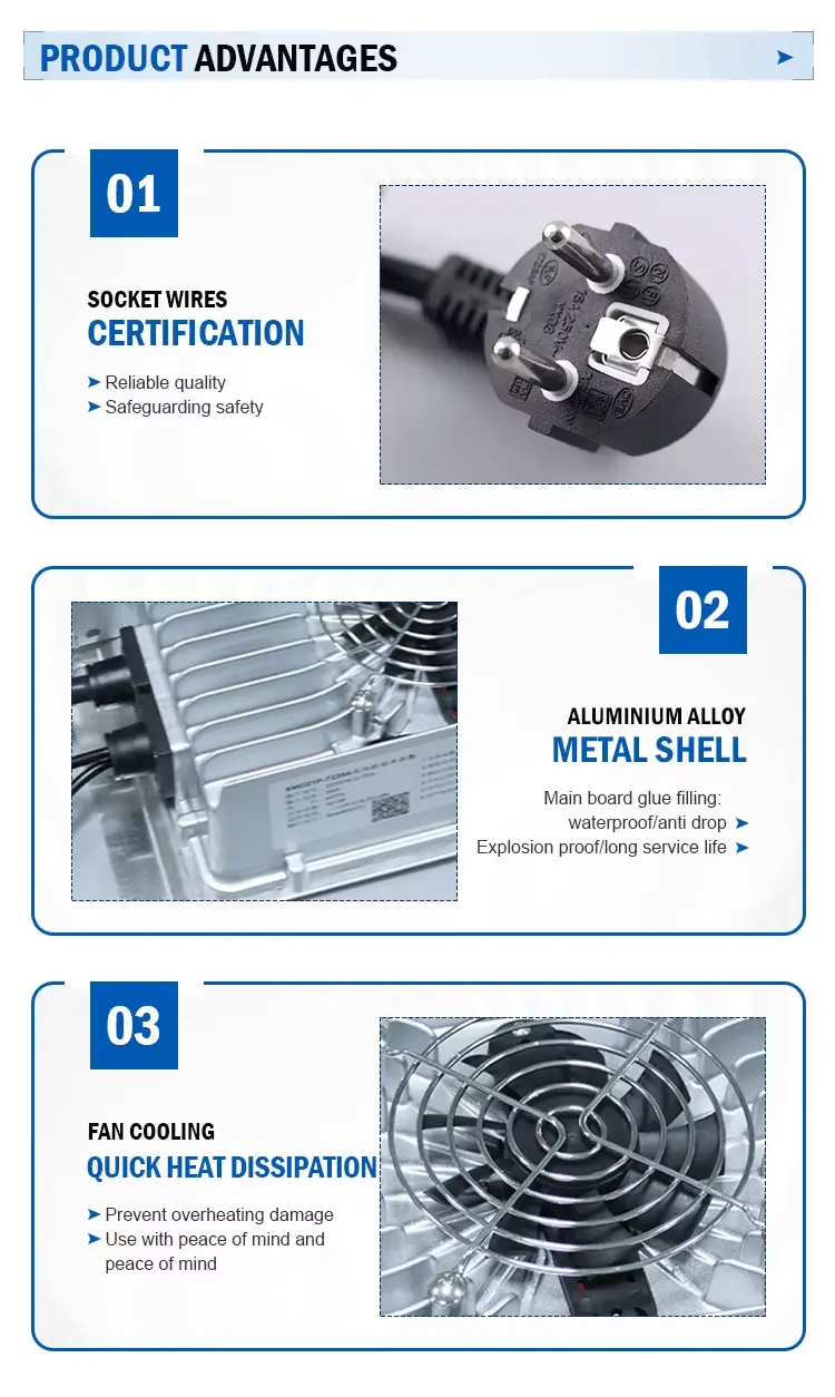اعلی کارکردگی اور سمارٹ تحفظ: 93% تک کارکردگی اور ≥0.98 کے پاور فیکٹر کو حاصل کرتے ہوئے، یہ چارجر توانائی کے نقصان کو کم کرتا ہے اور آپریٹنگ اخراجات کو کم کرتا ہے۔ بلٹ ان تحفظات میں اوور وولٹیج، شارٹ سرکٹ، ریورس پولرٹی، اور زیادہ درجہ حرارت کے تحفظات شامل ہیں۔ ایک LED انڈیکیٹر ایک نظر میں واضح چارجنگ سٹیٹس فراہم کرتا ہے۔