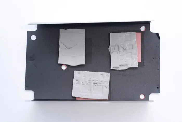 انسولیٹنگ مائیلر شیٹ کو ہٹا دیا جاتا ہے، جس میں پاور ڈیوائسز کے مطابق جگہوں پر سوراخ کاٹے جاتے ہیں، اور حرارت کو چلانے کے لیے تھرمل پیڈ فراہم کیے جاتے ہیں۔