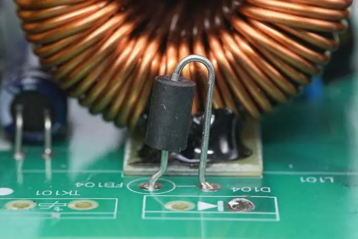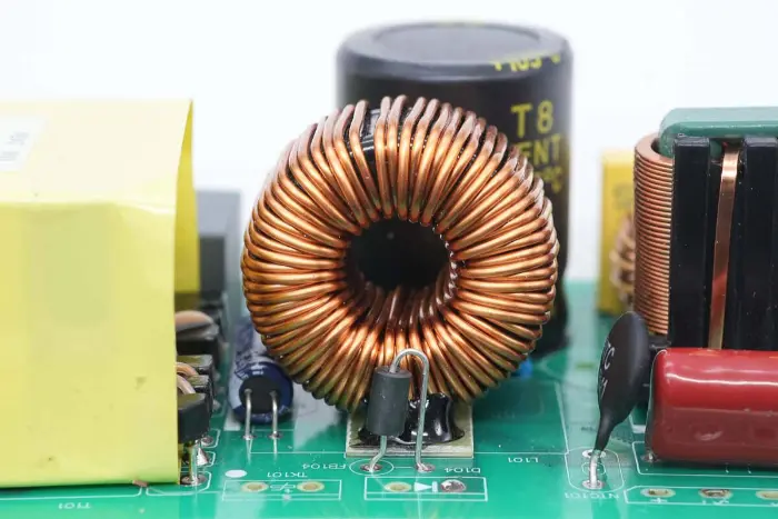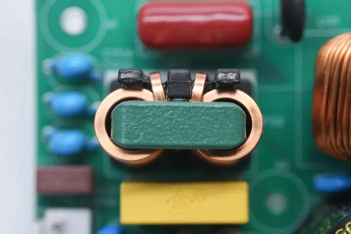 آؤٹ پٹ میگنیٹک رِنگ فلٹر انڈکٹر کا کلوز اپ۔