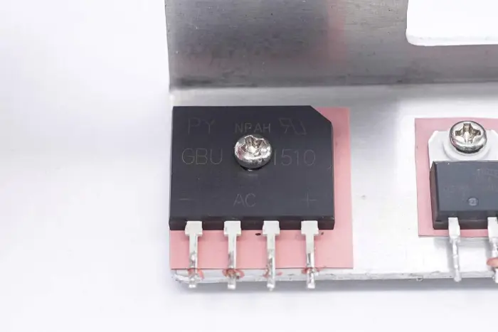 ریکٹیفائر برج، پی ایف سی ریکٹیفائر ڈائیوڈ، اور تھرمل سوئچ ہیٹ سنک پر فکس ہوتے ہیں۔