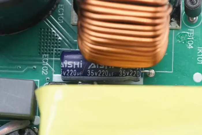 PFC بوسٹ انڈکٹر کو مقناطیسی انگوٹھی کے ساتھ زخم کیا جاتا ہے، اور موصلیت کے لیے نیچے ایک بیکلائٹ شیٹ فراہم کی جاتی ہے۔