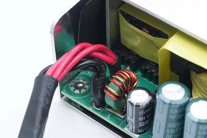 تجزیہ کے ذریعے، یہ پتہ چلا ہے کہ STARWELL کی طرف سے شروع کیا گیا 300W GaN پاور سپلائی ماڈیول اندرونی ہیٹ سنک پر طے شدہ تھرو ہول ریکٹیفائر پلوں اور ریکٹیفائر ڈائیوڈس کا استعمال کرتا ہے۔ پیچ GaN سوئچز تھرمل پیڈ استعمال کرتے ہیں تاکہ گرمی کی کھپت کے لیے نیچے کے ایلومینیم کھوٹ کے خول تک گرمی لے جا سکیں، گرمی کی کھپت کی صلاحیت کو بہتر بناتے ہیں۔ زیادہ گرم ہونے کی صورت میں کنٹرولر پاور سپلائی کو سوئچ کرنے کے لیے اندرونی ہیٹ سنک پر ایک تھرمل سوئچ لگایا جاتا ہے، مجموعی طور پر زیادہ گرمی سے تحفظ کا احساس ہوتا ہے۔
