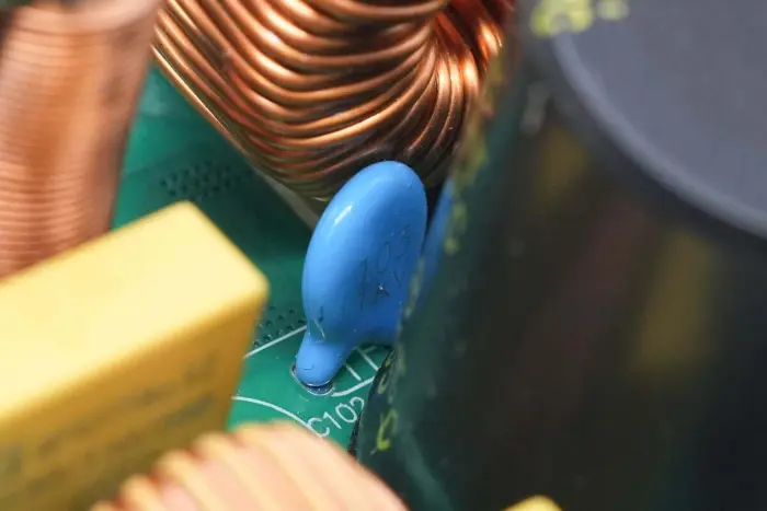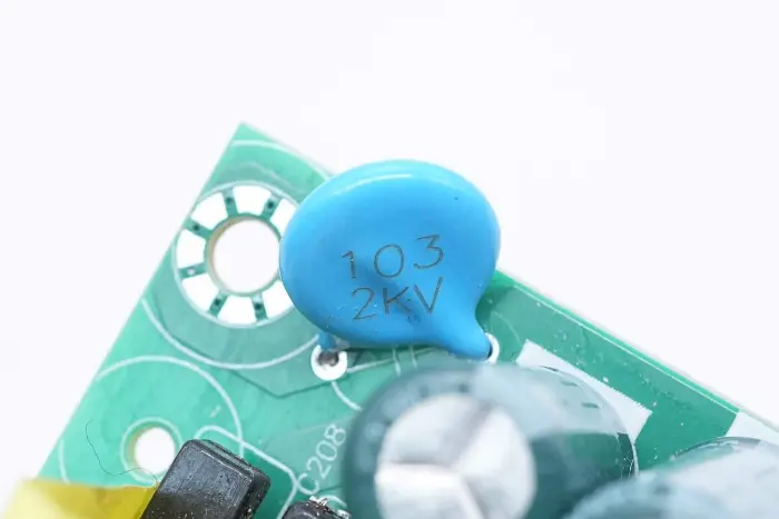 سیرامک کیپسیٹرز الیکٹرولائٹک کیپسیٹرز کے ساتھ متوازی طور پر جڑے ہوئے ہیں، 0.01μF 1KV کی تفصیلات کے ساتھ۔