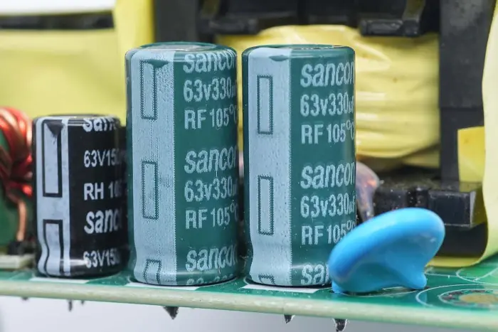 آؤٹ پٹ فلٹر کیپسیٹرز Sancon (Nantong Sanxin) سے ہیں، RF سیریز لانگ لائف کیپسیٹرز، 63V 330μF کی تصریح کے ساتھ، دو متوازی۔