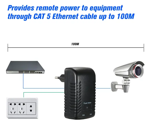 48V IEEE 802.3af معیار کے مطابق، یہ غیر معیاری وال ماؤنٹ ایتھرنیٹ اڈاپٹر ایک مستحکم 15W پاور آؤٹ پٹ فراہم کرتا ہے، جو کہ زیادہ تر POE سے چلنے والے IP کیمروں کو مکمل طور پر سپورٹ کرتا ہے، جس میں عام طور پر 15-25W کی ضرورت ہوتی ہے (ہائی پاور PTZ ماڈلز کو چھوڑ کر)۔ یہ آئی پی فونز اور 802.3af یا 802.3at POE معیارات کے مطابق دیگر آلات کے ساتھ بھی قابل اعتماد طریقے سے کام کرتا ہے، جو نگرانی کے سیٹ اپ کے علاوہ وسیع مطابقت پیش کرتا ہے۔ مستحکم طویل مدتی آپریشن کے لیے بنایا گیا، وال پلگ POE انجیکٹر ایک ایتھرنیٹ کیبل پر پاور اور ڈیٹا ٹرانسمیشن کو ضم کرتا ہے، رہائشی، تجارتی، اور سیکیورٹی نیٹ ورکنگ پروجیکٹس کے لیے تنصیب کے وقت اور مادی اخراجات کو کم کرتا ہے۔