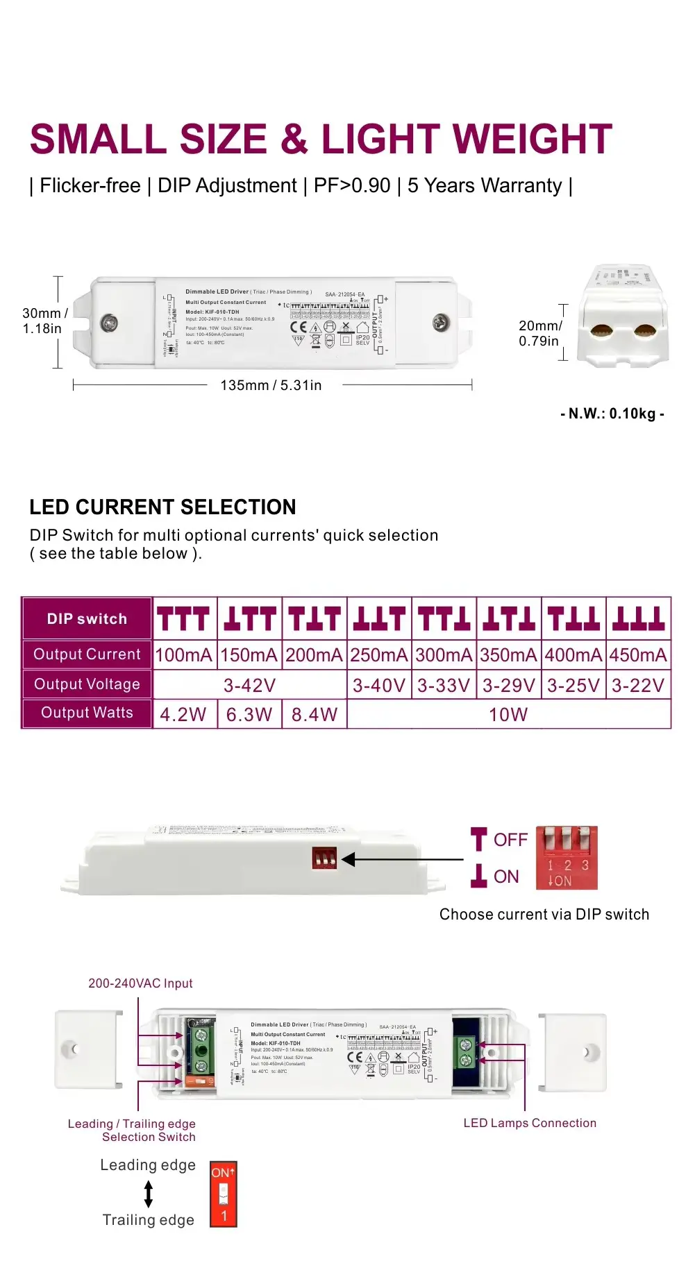 آسانی سے ، ہموار ڈیمنگ: معیاری معروف کنارے والے ٹرائک وال ڈممرس کے ساتھ مطابقت کے لئے خاص طور پر ڈیزائن کیا گیا ہے۔ ایک وسیع ، ہموار ڈممنگ رینج کو کم سطح تک کم کریں ، بغیر کسی فلکر ، پاپ آن اثر ، یا غیر مستحکم کٹ آف کے ، جس سے صارف کا اچھا تجربہ ہو۔