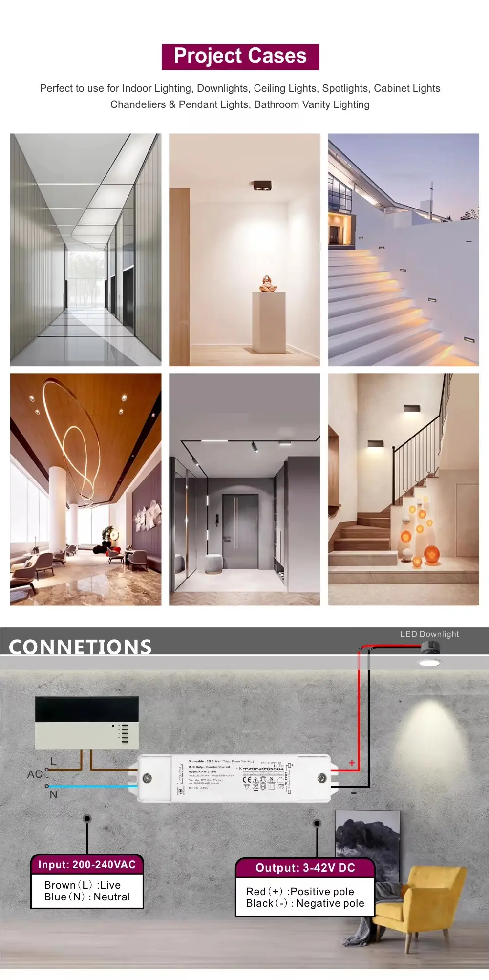 مضبوط طاقت اور اعلی کارکردگی: اعلی پاور فیکٹر اصلاح (PF> 0.9) اور کم کل ہارمونک مسخ (THD) کے ساتھ ، ہمارا ڈرائیور عالمی توانائی کی بچت کی ضروریات کو پورا کرتا ہے ، آپ کے بجلی کے نظام پر بوجھ کو کم کرتا ہے ، اور ٹھنڈی ، قابل اعتماد کارکردگی کے ساتھ کام کرتا ہے۔